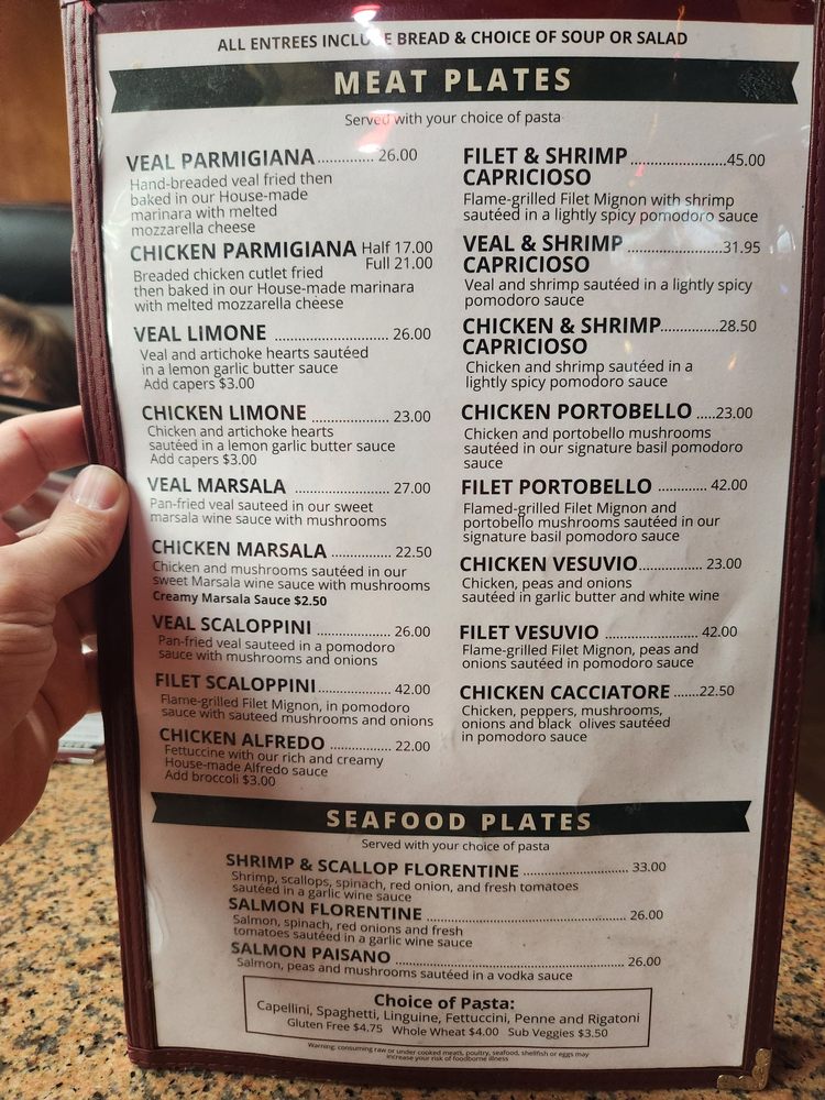 Veal and shrimp sauted in a lightly spicy Pomodoro sauce.